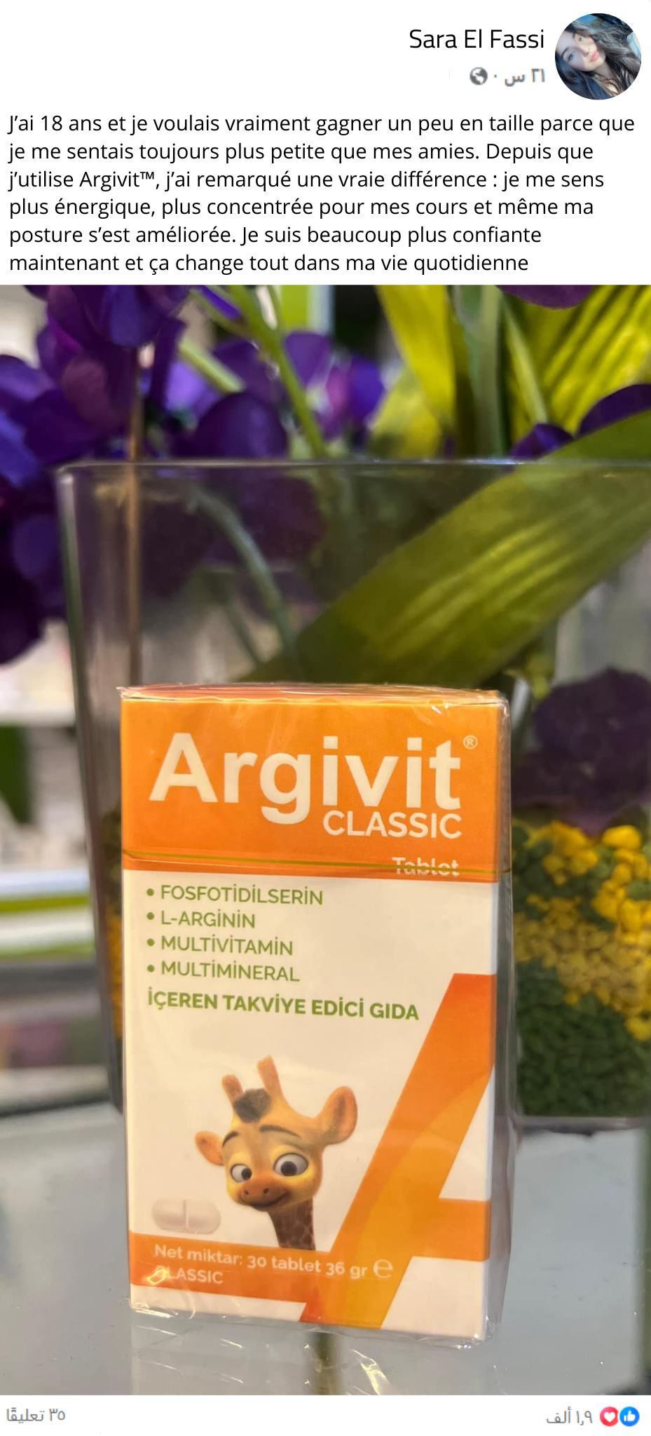 En résumé : Argivit™ t’offre un mélange 100% naturel pour soutenir ta croissance, renforcer tes os et t’aider à obtenir la taille dont tu rêves, avec plus d’énergie et de confiance chaque jour.